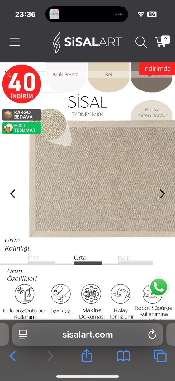 Sydney keten bordür sisal halı 100x300 ve 100x200 ölçülerinde var iki kalı için ilandır ürünleri 4 ay kullandım bir sorunları yok iki halının güncel fiyatı 10.000 tl dir