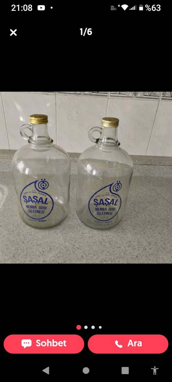 kapaklı, boyun kısmında kulplu, üzerinde mavi 'Şasal' logosu bulunan parlak beyaz cam şişeler. tane fiyatıdır elimde 6_7 tane mevcut yeni gibi tertemiz