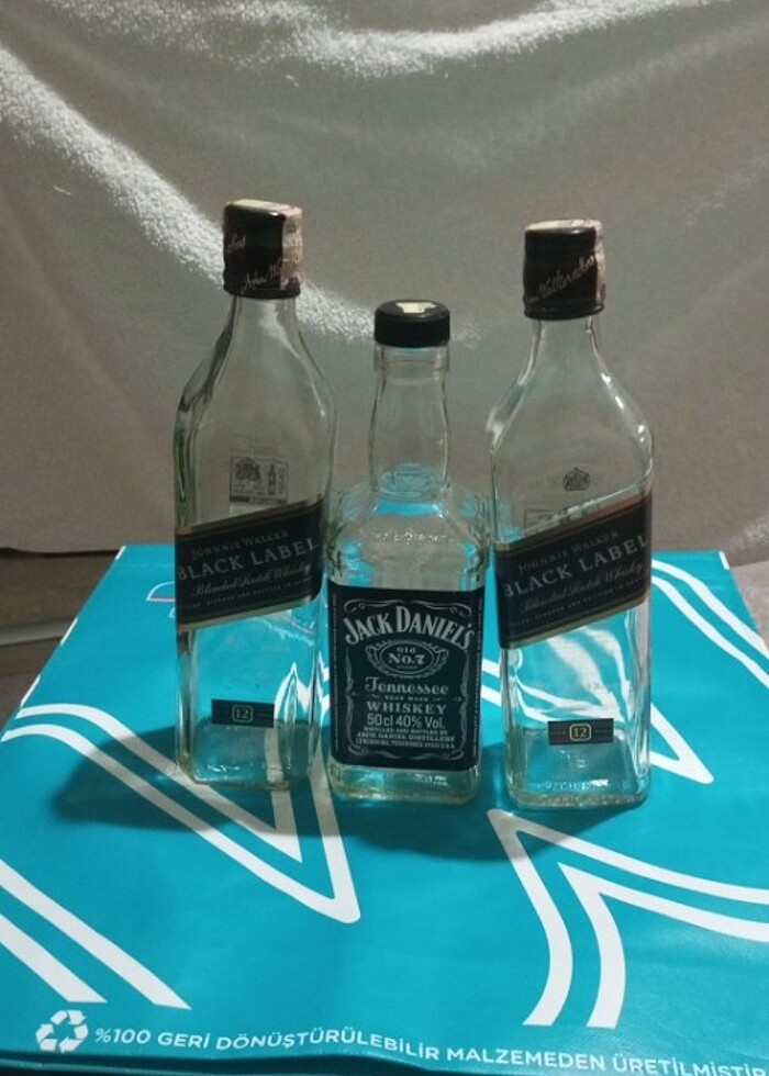 2 Adet 50 lik BLACK LABEL ve 1 Adet JACK DENİELS Viski şişesi. Üç adedi 120 TL dır. Evde fazlalık olup, orijinal üründür. Uç kısmında bilya yoktur. Temiz üründür