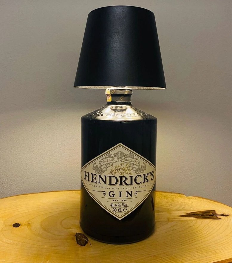 Siyah şişe şeklinde taban ve uyumlu siyah abajurlu masa lambası. Her mekana özel bir dokunuş katar. Dokunmatik, şarj edilebilir