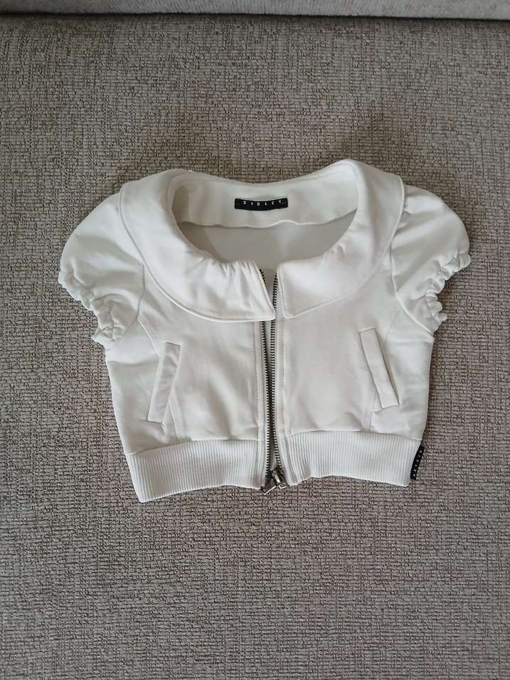 Orijinal Sisley marka, beyaz renk kısa kollu crop ceket. Önü fermuarlı, bel kısmı ribanalı, cepli ve şık yaka detaylıdır. Kumaşı yumuşak ve rahattır. Kullanılmıştır ancak çok temiz durumdadır, leke veya yıpranma yoktur. Günlük kullanım ve spor-şık kombinler için uygundur. Beden ölçüsü iki kol arası göğüs 30 cm uzunluk 26,5 cm