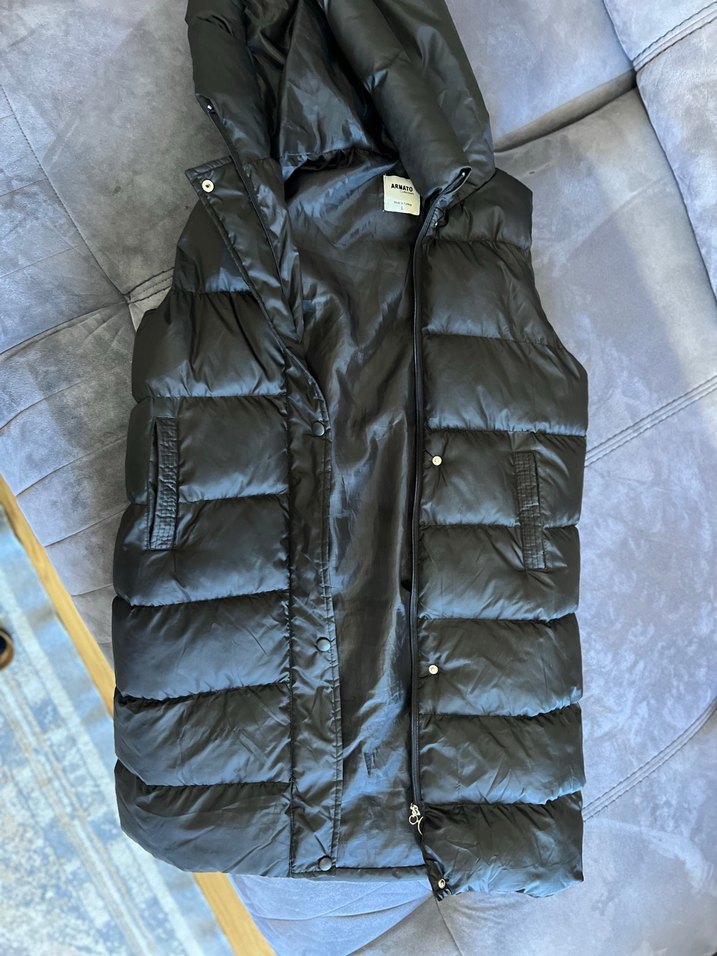 şişme Düğmeli Siyah Midi Kadın Yelek