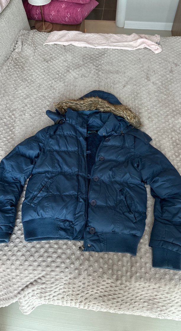 İçi kürklü mavi şişme mont