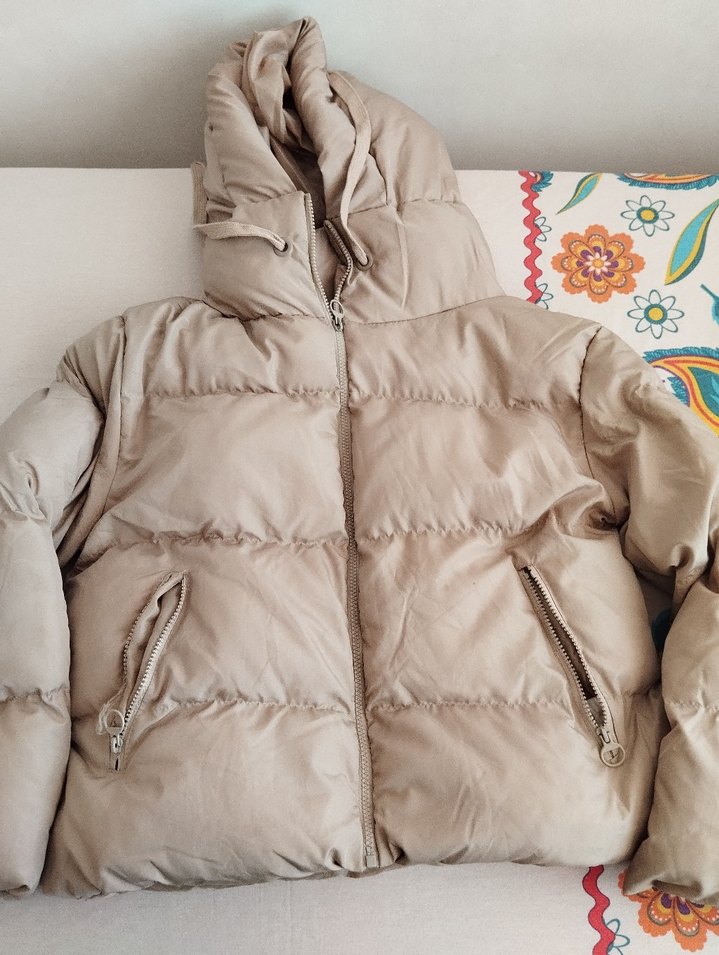 Yumuşak ve sıcak kumaştan yapılmış bej kapüşonlu fermuarlı kışlık kadın montu. Uzun kollu, dar kesim midi boy ve fermuarlı cepler içerir, gündelik sokak stili için uygundur. ❄️ s m uyar sorunu yok az giyildi cebinde ve sapkasinin ucunda sokuk var ama belli olmuyor