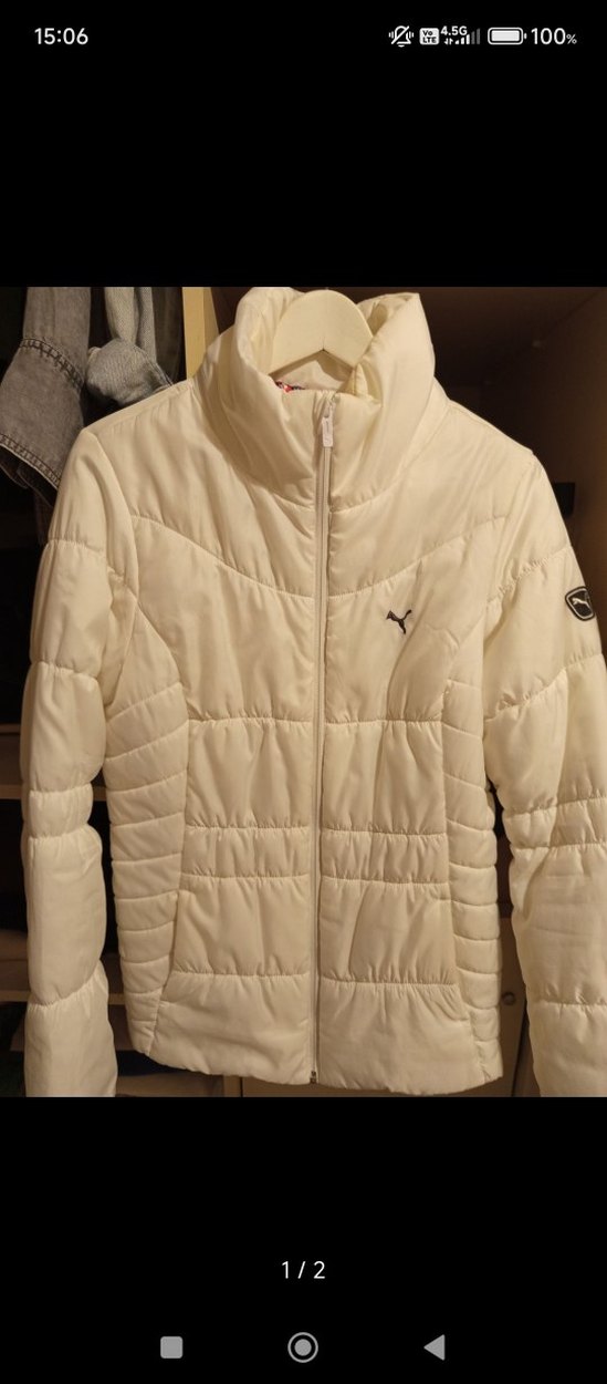 Fermuarlı, uzun kollu, beyaz renkli, normal boyda, kalıplı kadın kışlık mont Parlak ve desensiz yüzeye sahip, günlük kullanıma uygun rahat sokak stili.