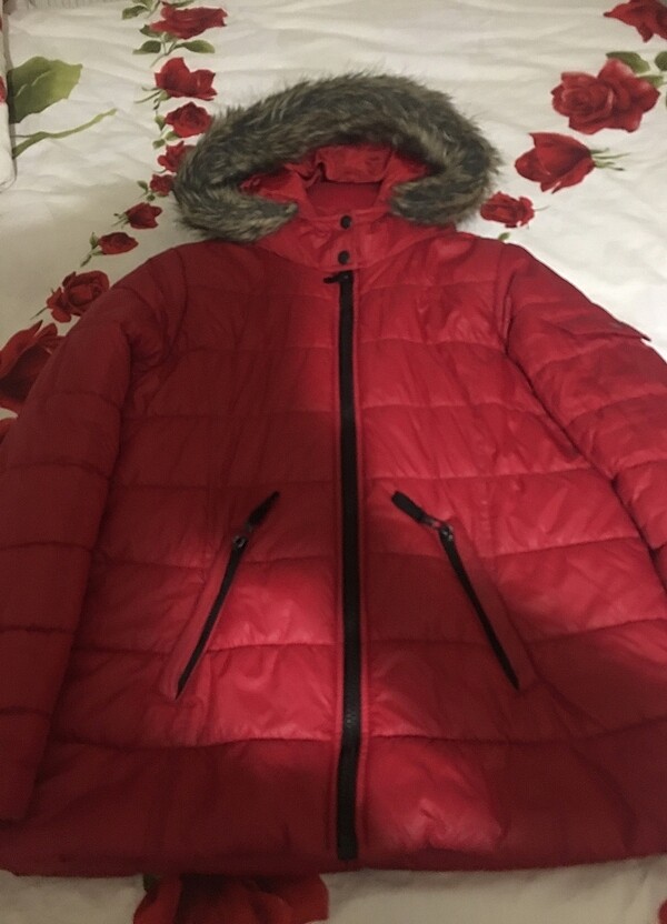 Yeni gibi tertemiz şişme mont iki kol arası 57cm omuzdan etek ucuna 57cm yakası kürklü kürkü cıka biliyor mis gibi mont