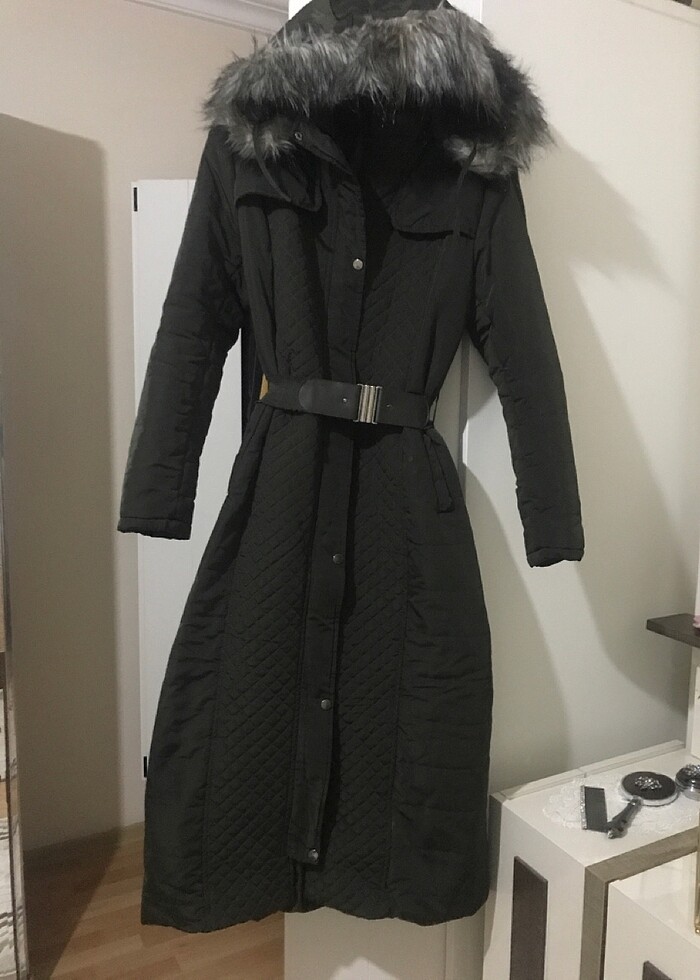 Montun boyu 125 santim kalın kapitone astarlı şapkası fermuarlı tak çıkar oluyor1.60 boyum var bilekte bi model oluyor.