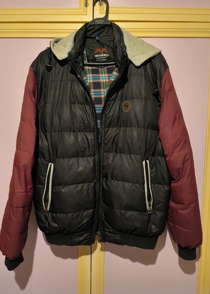 iki renk kapşonlu erkek şişme mont bir sorunu yok