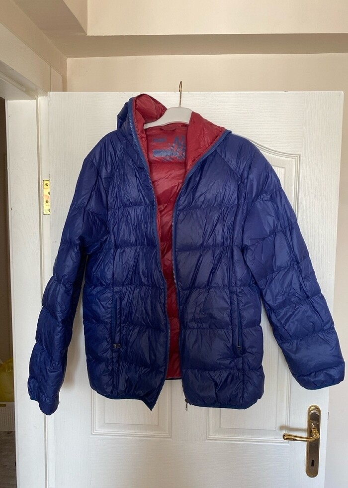 Erkek Lacivert içi kırmızı mavi marka 2xl şişme mont