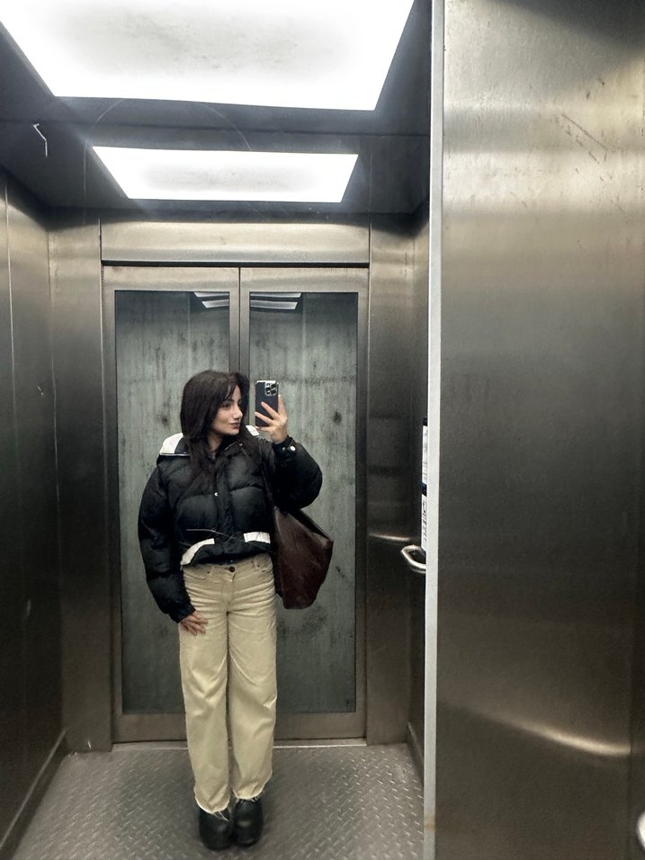 Siyah deri, puff detaylı, yüksek yakalı ve uzun kollu kışlık mont. Salaş kesimi ve midi boyu ile gençler için sokak stiline uygun.