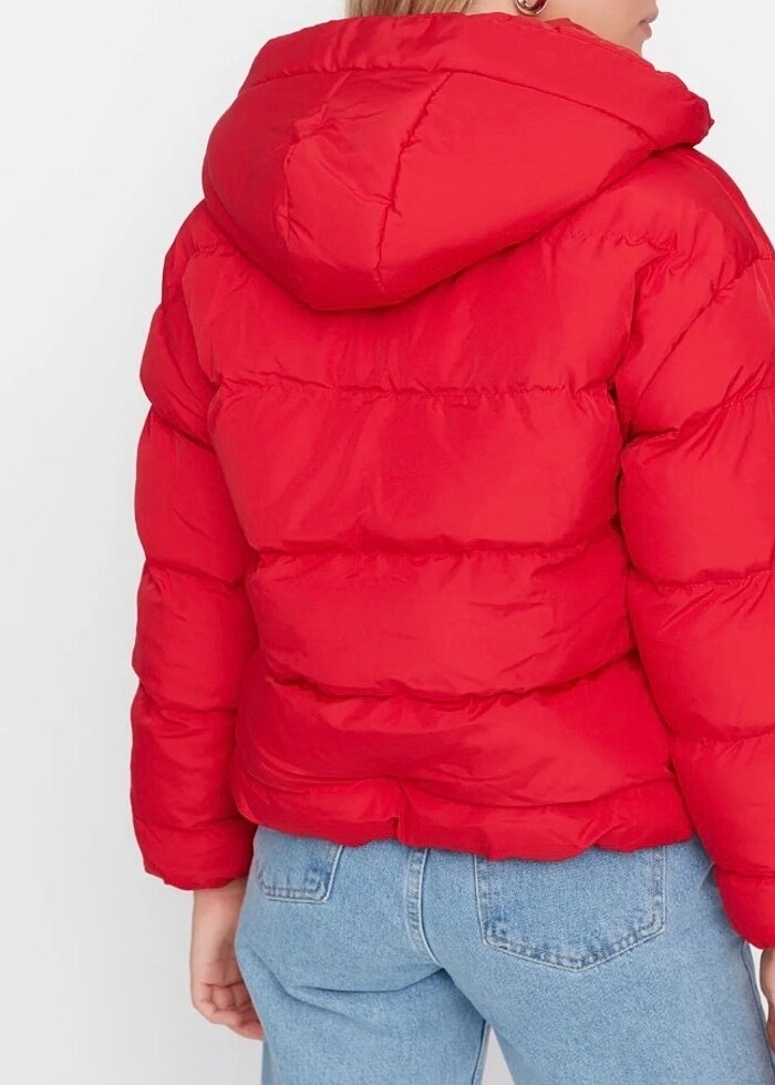 kırmızı sisme mont s beden uyumludur oversize bir durusu var