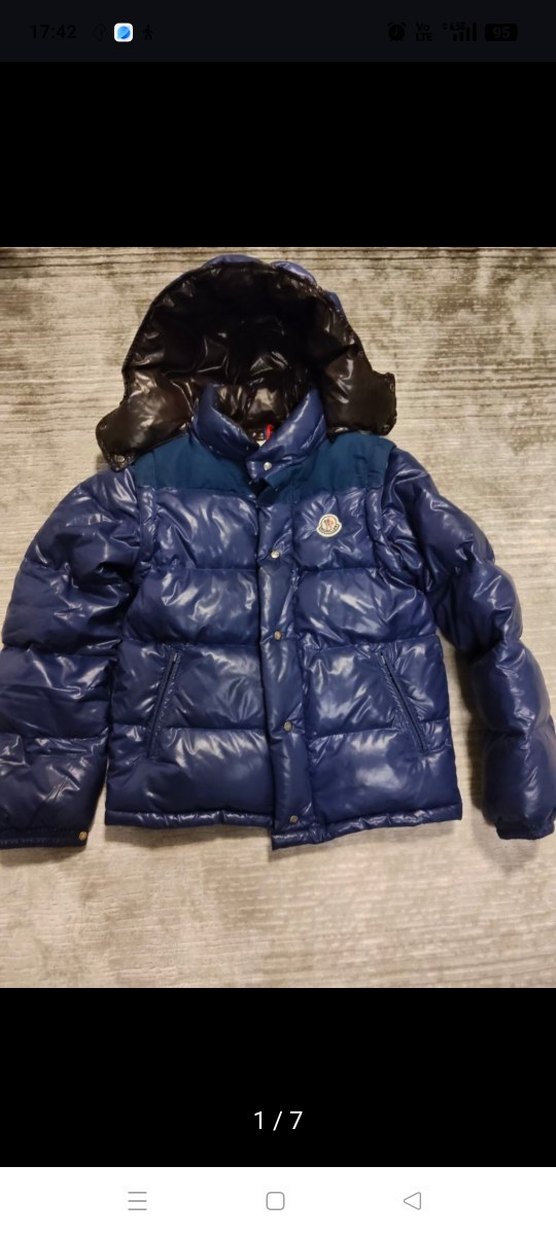 Düğmeli ve fermuarlı uzun kollu, lacivert orjinal moncler şişme mont kolları omuzdan fermuarlı istenirse yelek olarak da kullanılabilir kaz tüyü sadece kol ağzında yırtık var resimlerde görünüyor. başka hiçbir sorunu yok