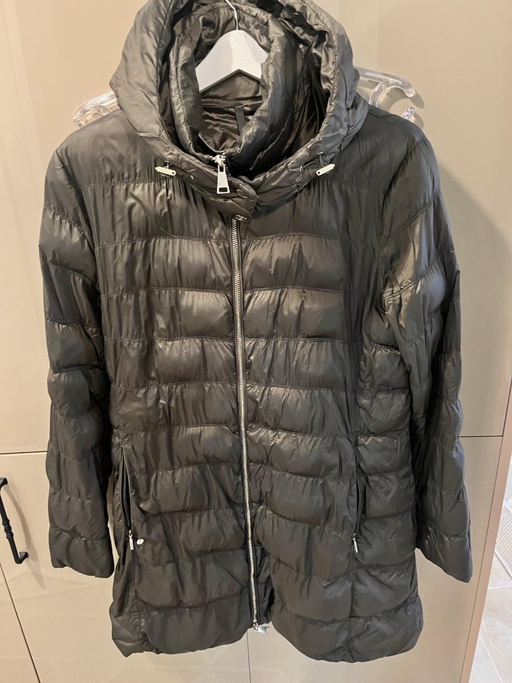 Siyah, yüksek yakalı, fermuarlı ve fitted kesim kadın kışlık mont. Yumuşak sentetik kumaştan, midi boyda, desen içermeyen sokak stili dış mekan montu. M Ve L bedene uyumlu