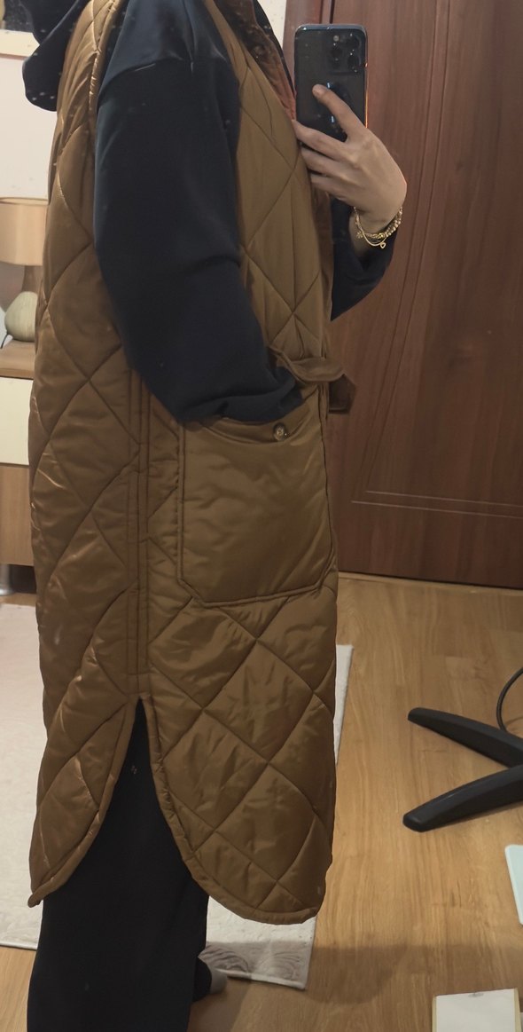 Uzun oversize bir şişme yelek. Kemerle de kombinlenebilir. Diz altına kadar uzun bir model. Az kullanılmış. Standart beden