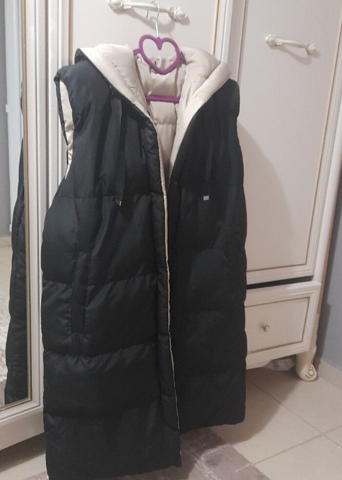 Şişme yelek çift taraflı cepli kapşonlu renk siyah vizon yepyeni hiç sorunu yoktur gorselde bellidir sayılı kulanildi şehir dışı için ayriten numarasini verip videoya aliabilirim beden 44 42.ve 46 da olur ve uzunluk boy 80 standard bedendir son fiyat eklenmiştir