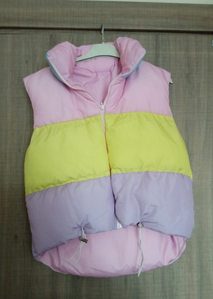 Şişme mont yelek hiç giyilmedi sıfırdır. Sanıyorum çift taraflı da kullanılıyor. 36-42 bedene kadar olur.
