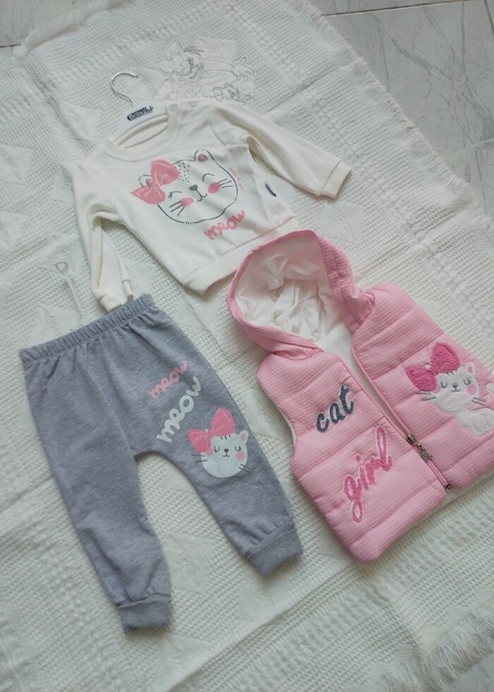 Şişme yelekli kız bebek takım 6-9, 9-12, 12-18 aylik