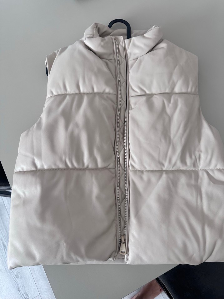 Yüksek yakalı, fermuarlı ve kolsuz bej yelek.deri midi boyda ve vücuda oturan kesimde, gündelik sokak stili için uygun. Zaranın çocuk bölümünden almıştım çok kullanmadım hiçbir sorunu yok s-m bedene uygun
