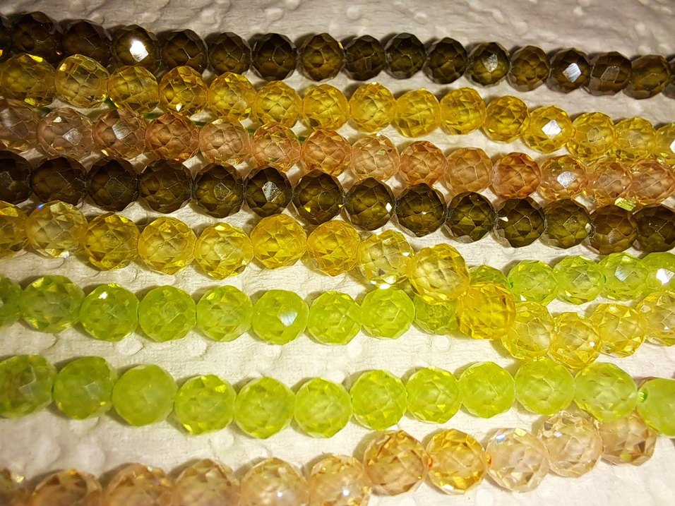 Sarı-Sitrin, Turuncu- Güneş taşı , Açık yeşil-peridot, koyu yeşil- garnet taşıdır. Kolye yapımına uygundur. Gece elbisesine uygun taşlardir. 3 mm. Tek dizi fiyatıdır. Mücevher kesimdir. taşlar kalitelidir.