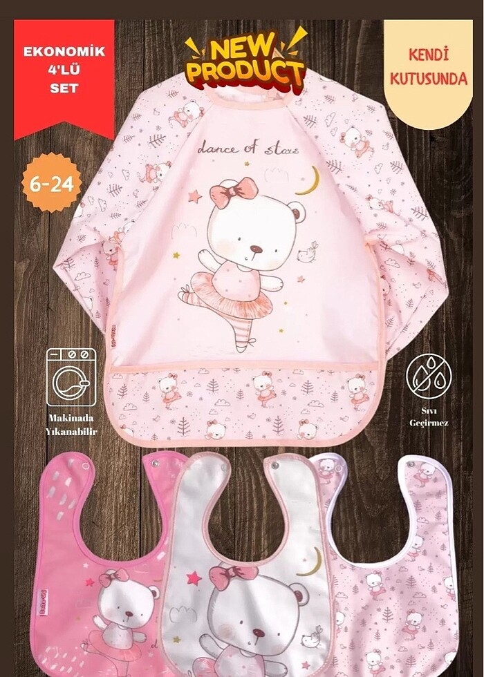 Sıvı geçirmez 4?lü mama önlüğü