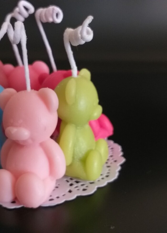 5 tane 100%soyamumu sivimli ayıcık renkli kokulu el yapımı hediyelik dağıtmalık özel günler mumlar En 3cm Yükseklik 4 cm