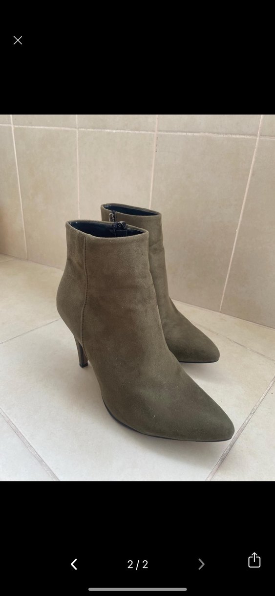 sivri burunlu haki süet kadın botları. Minimalist ve çağdaş stil için ince topuklu, günlük kullanım için uygundur.