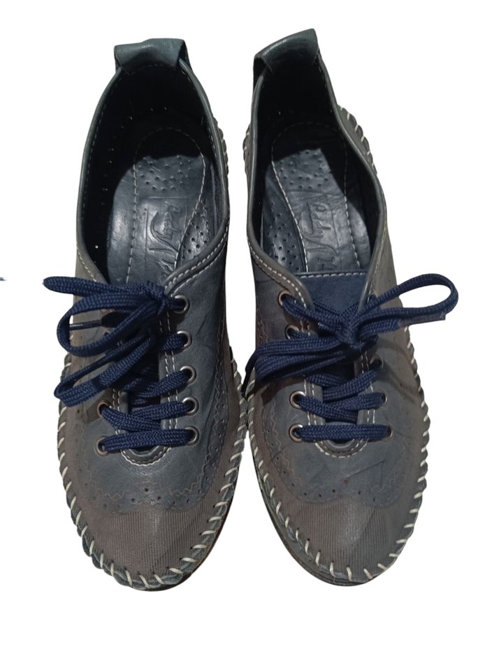 Kadınlar için sivri topuklu, bağcıklı, mavi ve gri yılan desenli kauçuk Oxford ayakkabılar. Sokak stili ve günlük kullanım için uygundur. orjinal deridir...