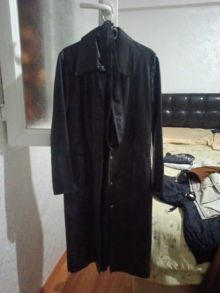 Siyah %100 deri Uzun Kadın ceket
