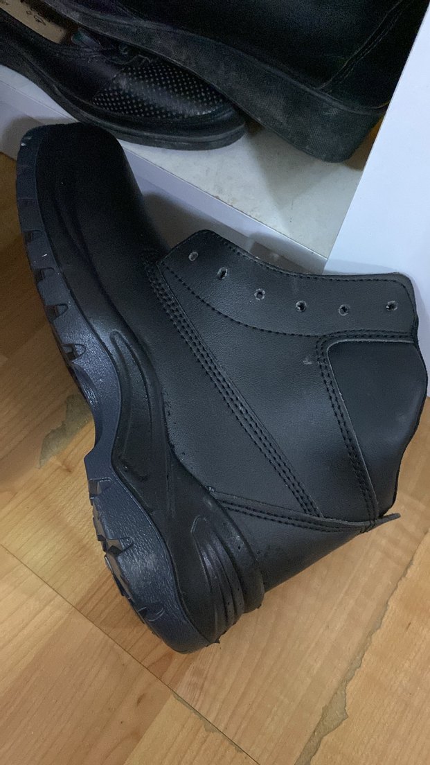 Siyah renkli, lastikten üretilmiş erkek biker botu, tokalı detaylara sahip. Sokak stili ve günlük kullanım için uygundur.