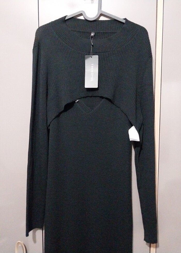 Ürün 1 adet kısa kollu maxi elbise ve 1 adet uzun kollu bisiklet yaka göğüs dekolteli crop eklentiden oluşmaktadır. Pamuklu ve fitilli kumastir. Hiç kullanilmamistir. Renk kondisyonu 10/10. Kilo verdiğim için satıyorum. Elbise Koltuk altından boy 110 Elbise Göğüs 45+15 esnek Elbise Basen 50+20 esnek Uzun kollu crop eklenti iki omuz arası 50+10 esnek Uzun kollu crop eklenti İki koltuk altı arasi 60+10 esnek