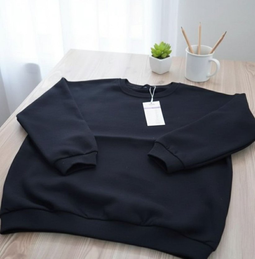 Siyah 3 iplik sweatshirt, yuvarlak yaka ve uzun kollu, rahat bir kesime sahiptir. Düz ve yumuşak kumaşıyla günlük kullanıma uygundur. Ürün sıfırdır ama etiketi yoktur. XL bedendir.