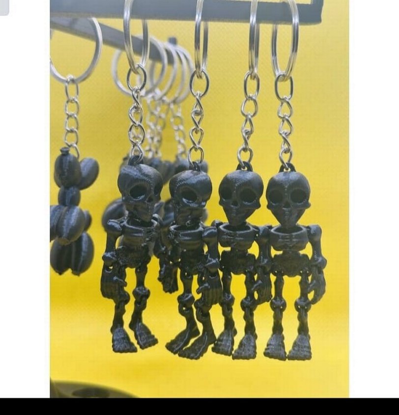Siyah iskelet anahtarlik 3d yazıcıda basılmıştır kalitelidir.