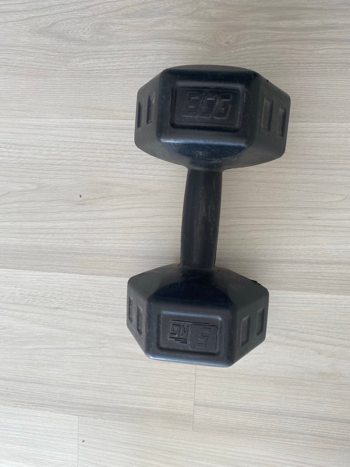 Altıgen şekilli, tutma kısmı düz siyah 5 kg dambıl, farklı güç egzersizleri için uygundur. ️fiyatta yardımcı olurum