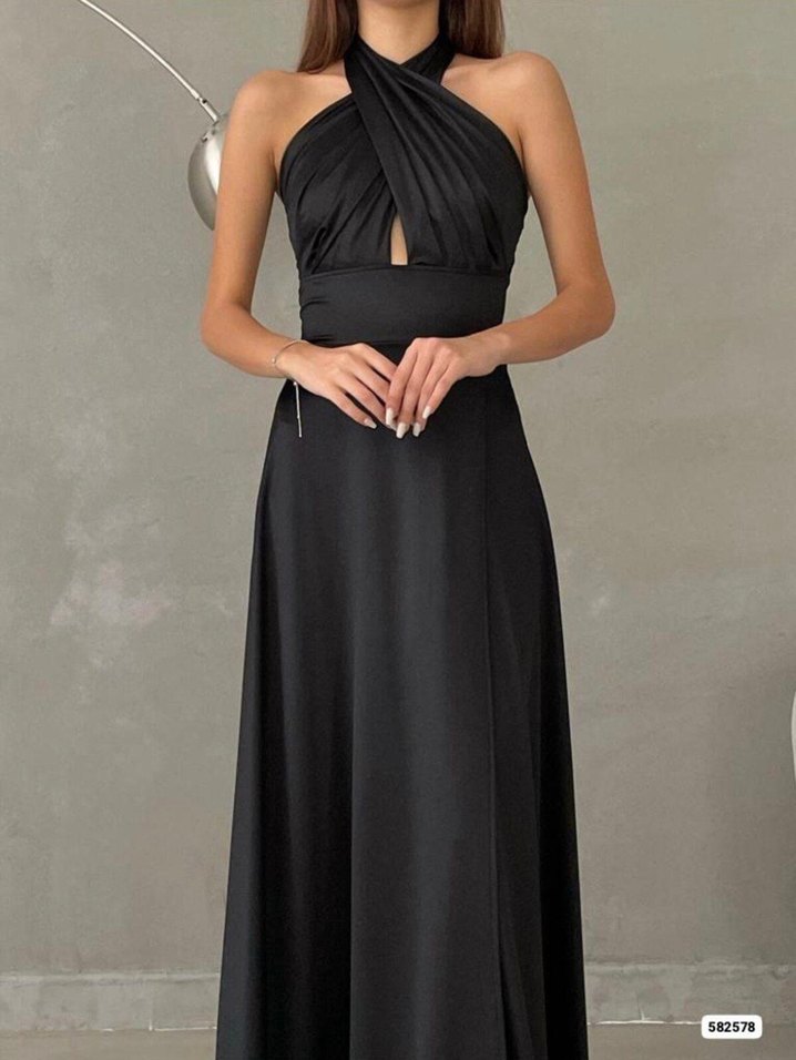 Yeni etiketli hiç giyilmedi. Siyah, drapeli ve straplez yakalı uzun elbise, ince askılı detaylara sahiptir. İpek gibi kumaştan, klasik ve gotik tarzda, düğünlere uygun, rahat kesimdir. ✨