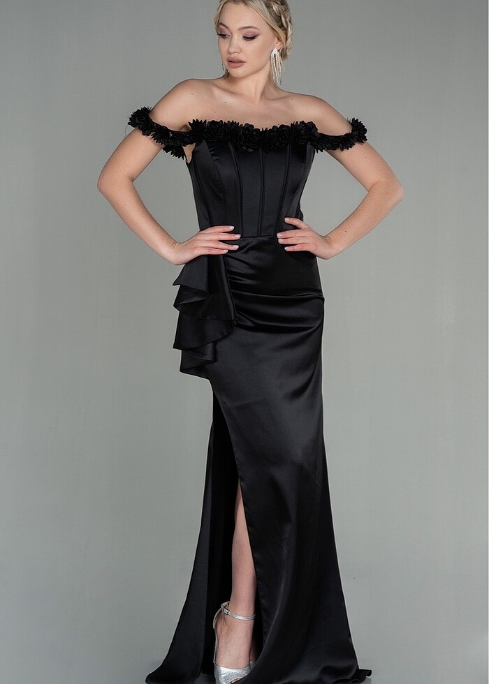 Düşük omuzlu siyah abiye elbise 1 kere giyildi So leydi markalı