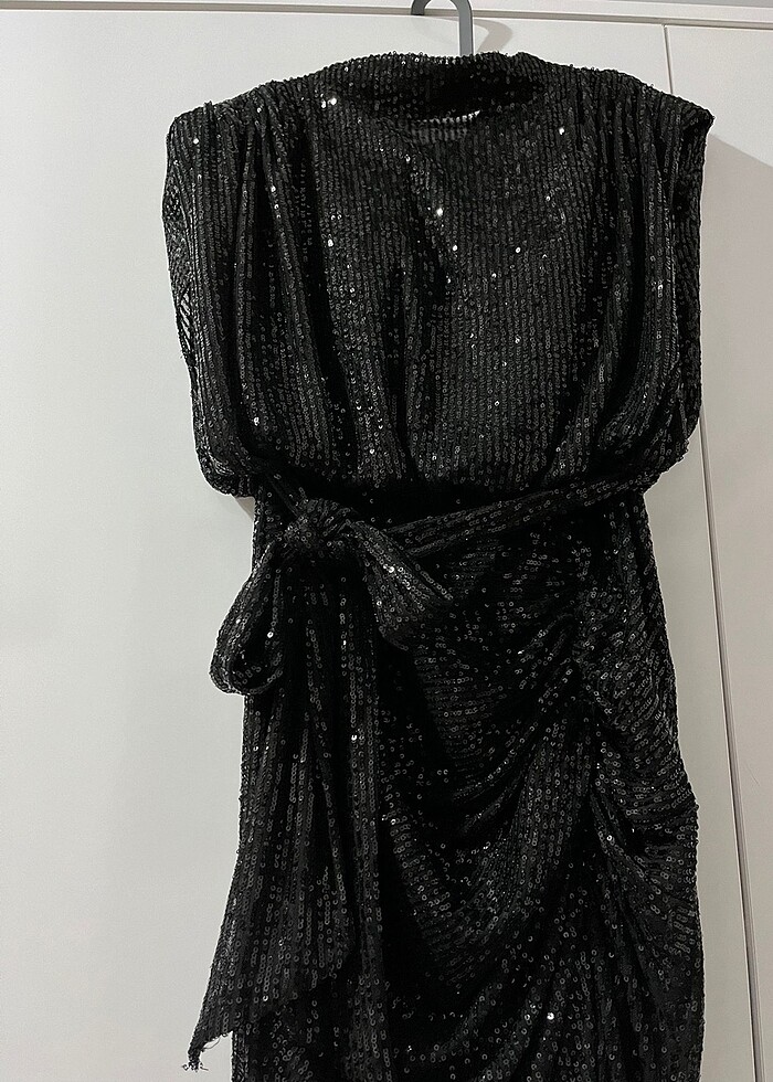 36 beden . 2 saat giyildi sorunsuz . Full payet . Boy 150 cm bel 33 cm . 163 boy ve 56 kilo ile giydim .
