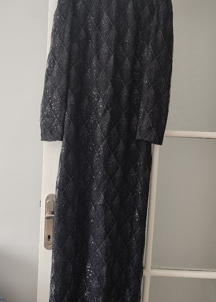 36 beden pullu simli abiye kalıbı çok güzel 160 boya bilek hizasında bir kere giyildi Şal dahil