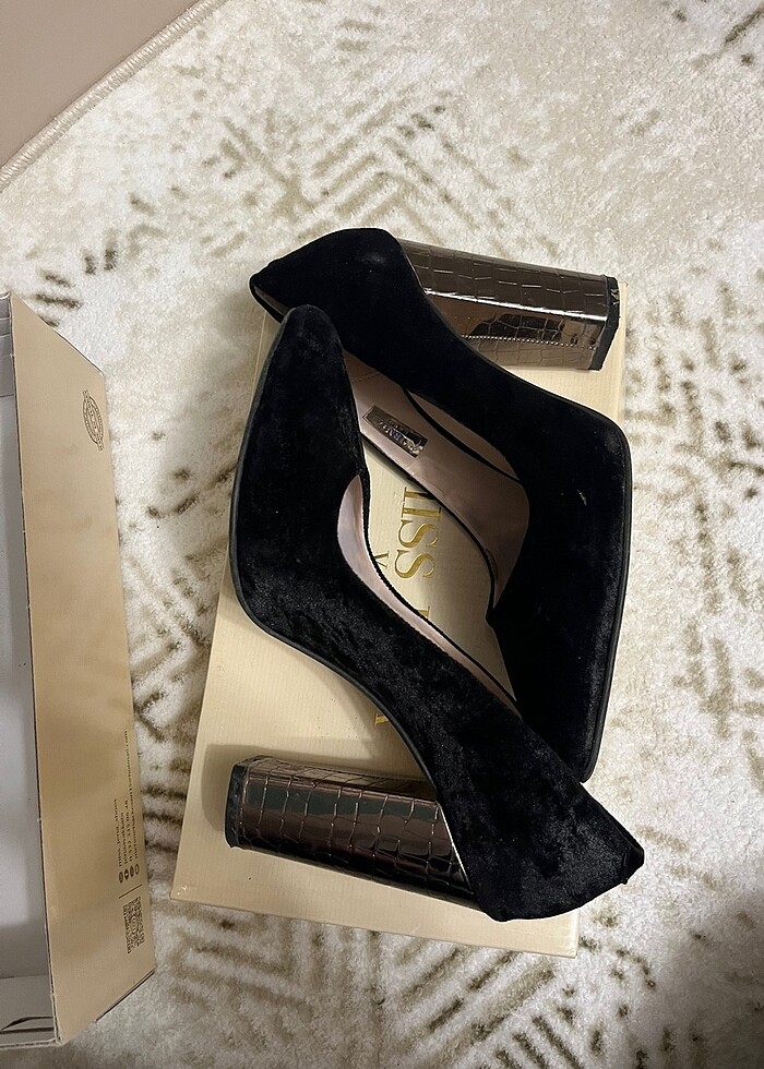 Siyah kadife görünümlü topuklu ayakkabı