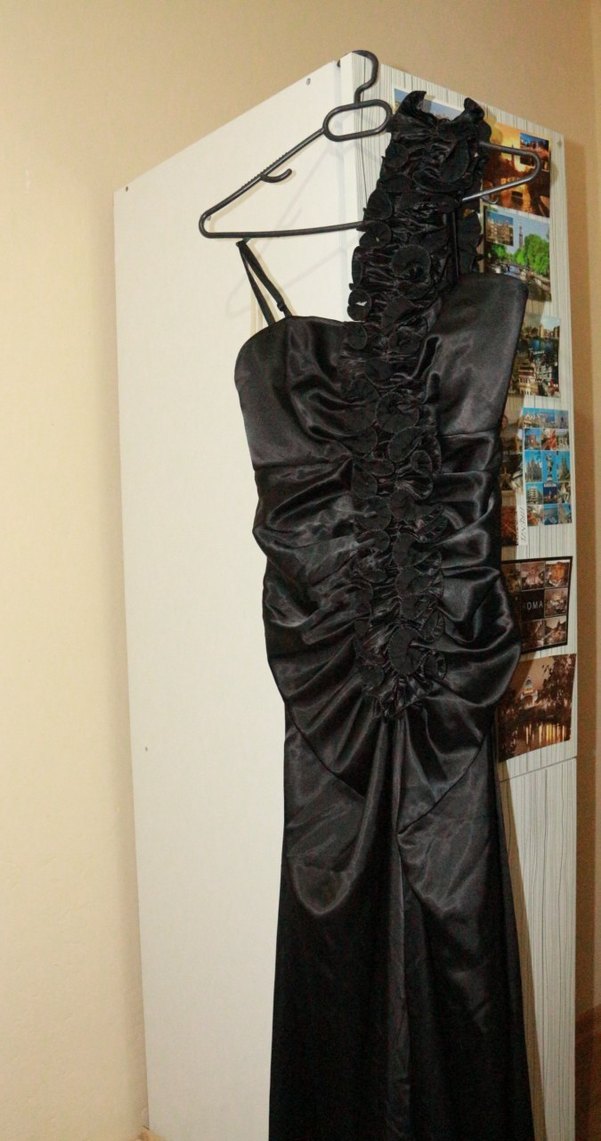 Siyah Abiye Elbise 36 beden Hafif kuyruklu elbisedir. Ön uzunluğu 110 cm, arkası 140 cm. Bel çevresi: 70-80 cm arası değişiyor Göğüs çevresi: 75-80 cm Göğüs bölgesi pedli Askının bir tarafı ayarlanabilir özellikte, diğer taraf sabit. Sokak hayvanlarının tedavi masrafları için satılık