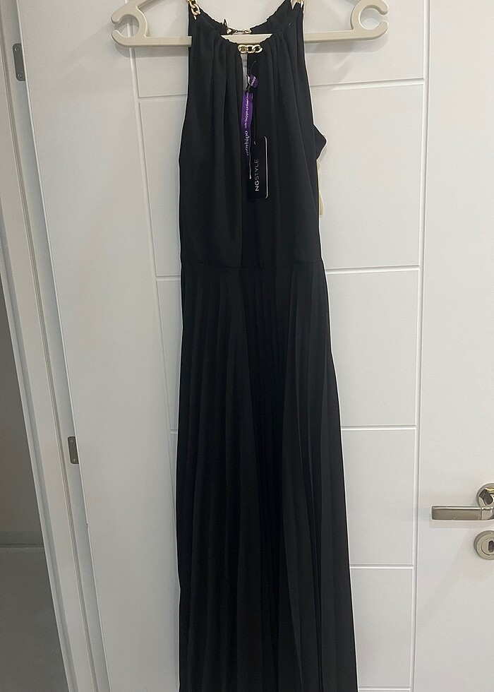Siyah abiye plise elbise