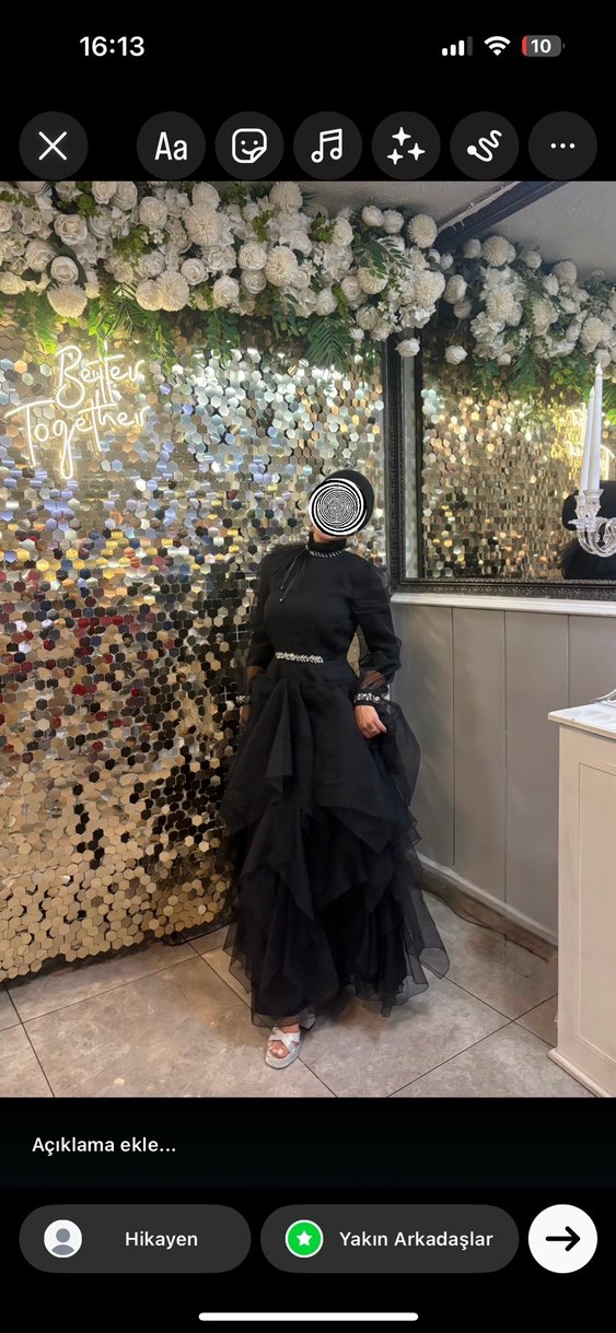Yakalığı ve belindeki taş detayı kendi tasarımımdır. Yakalığını takmazsanızda olabilir. Yaka kısmını ister komple içine sokun ister bir tarafını kullanın ayrı bir parçadır.Ben böyle bir uyum sağladım. Çok rahat bir elbise alıcısına şimdiden hayırlı olsun.