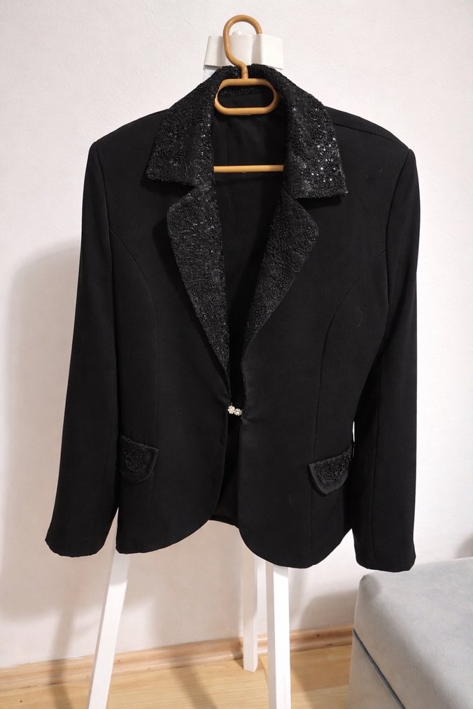 Çok az kullanıldı kendim için özel diktirdim çok kaliteli bir kumaştan yapıldı ceketi bele oturuyor ve çok şık duruyor özel taşlı Düğmeli Hiçbir yerinde yırtık ya da deformasyon yok yeni alınmış gibi