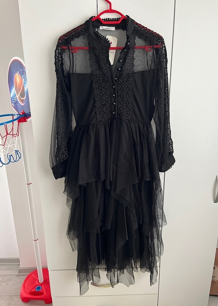Siyah abiye tül detaylı
