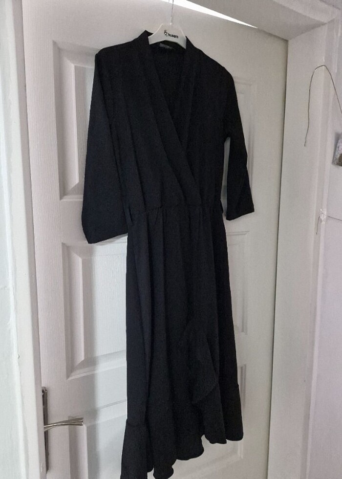 Siyah v yaka onu dokumlu yirtmacli elbise Bel 60 cm Boy arka 113 On yırtmaçlı 81 cm