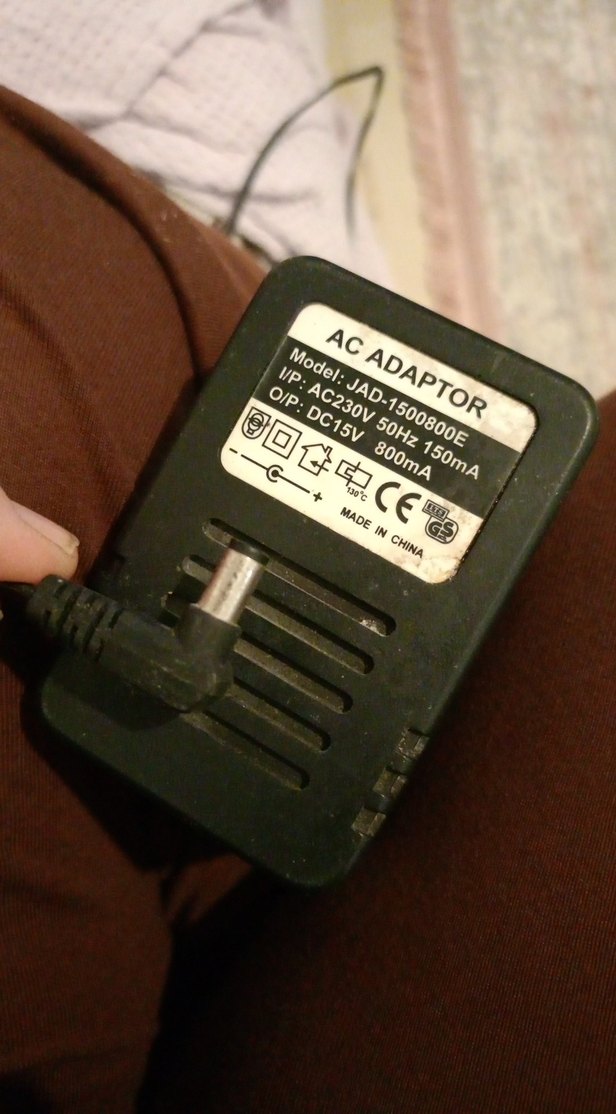 15V çıkış ve 800mA akım sağlayan siyah AC adaptör. JAD-1500800E model, 230V 50Hz güç kaynağı ile çalışır.