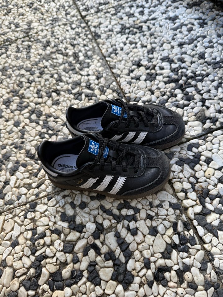Siyah Adidas çocuk spor ayakkabısı,Atletik ve sokak stili için uygundur, kauçuk malzemeden yapılmıştır. 25,5 no sorunsuz