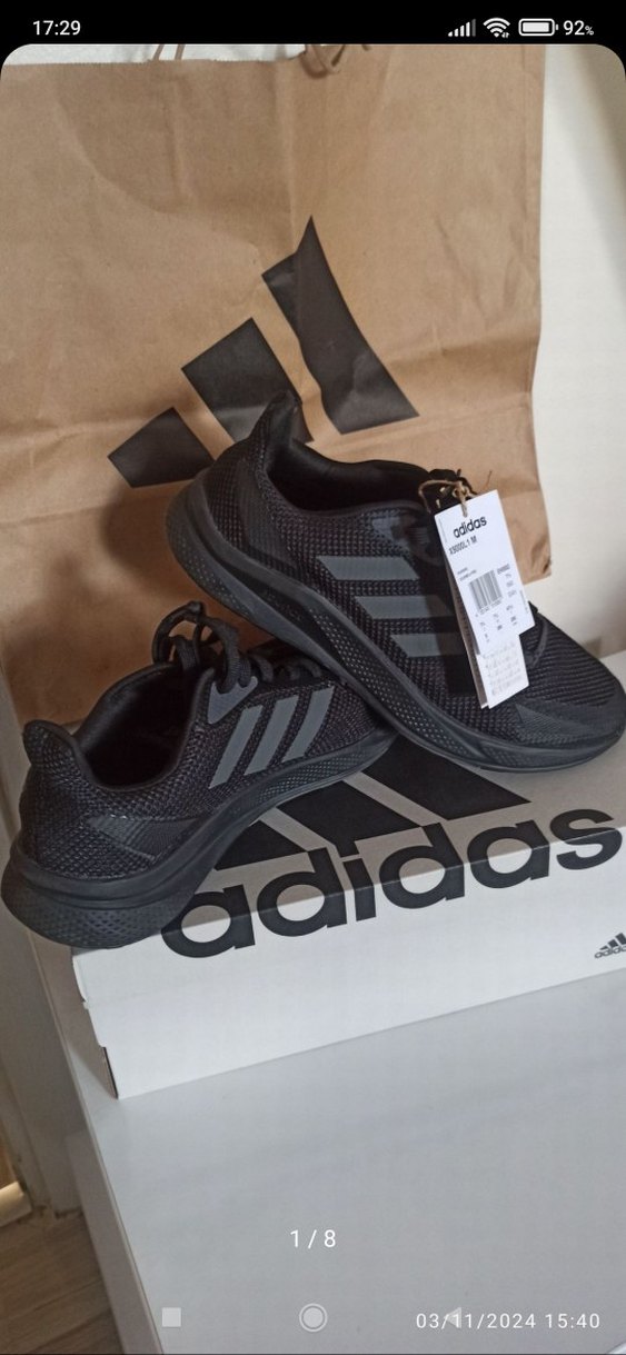 Siyah renkli, baskılı adidas erkek koşu ve spor ayakkabısıdır. Lastik tabanlı, bağcıklı ve sokak stiliyle uyumludur. ♂️