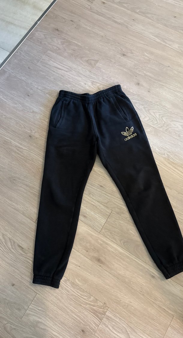 Siyah Adidas Erkek eşofman, salaş kesim ve normal boyda. Yumuşak ve sıcak kumaştan, lastikli bel ve yan ceplerle rahatlık sağlar. Spor ve günlük şıklık için uygun.