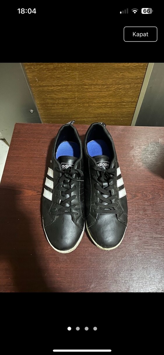 Siyah Adidas erkek spor ayakkabısı, velcro bantlı ve kauçuk tabanlıdır. Spor ve günlük sokak stiline uygundur.