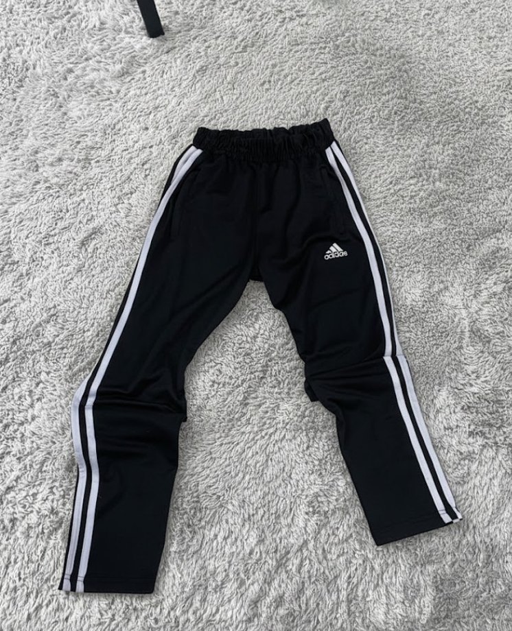 Siyah renkli, beyaz yan şeritli Adidas erkek spor eşofman altı. Elastik bel ve dar kesim ile rahat kullanım sağlar. ♂️